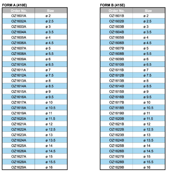 產品描述:OZ 筒夾 系列: 1.HRC : 47° 2.COLLET CLASS : Standard 3.CLAMPING RANGE : ≦0.2mm 1.HRC : 47° 2.COLLET CLASS : Standard 3.COLLET FORM : FORM B 4.CLAMPING RANGE : ≦0.5mm