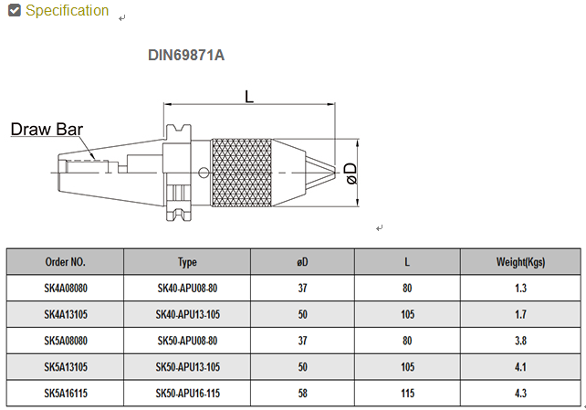 • 產品描述:SK鉆夾頭刀柄SK/APU:SK40→M16 x 2.0P,SK50→M24 x 3.0P